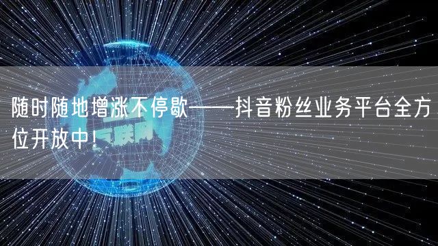 在这个全新的时代,让我们一起携手抖音粉丝业务平台,实现随时随地增涨不停歇,助力您的抖音账号快速成长,轻松成为网红达人!