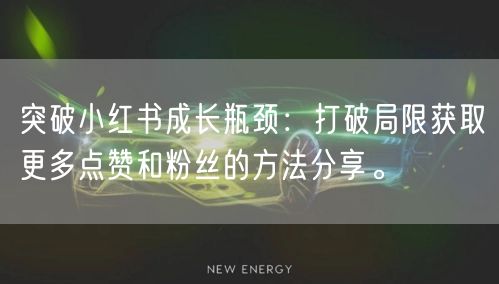 突破小红书成长瓶颈:打破局限获取更多点赞和粉丝的方法分享。